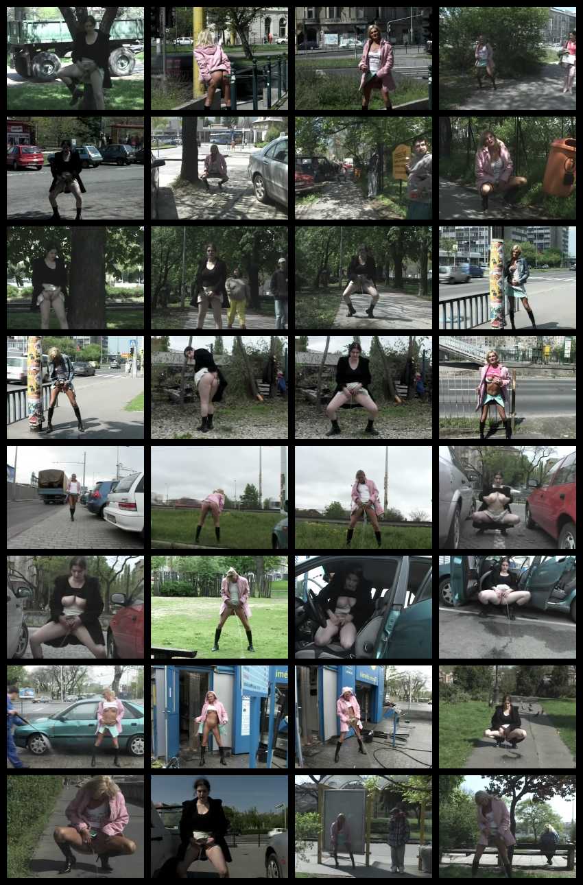 Задействованы две модели, полненькая брюнетка и стройная блонда. Девушки, разгуливая по улочкам города в парковой зоне и возле оживленных шоссе, обнажаются и писяют стоя по-пацански. Блондинка абсолютно не стесняется делать это перед случайными прохожими, похоже, что её даже очень заводит, когда мужчины жадно за ней наблюдают.