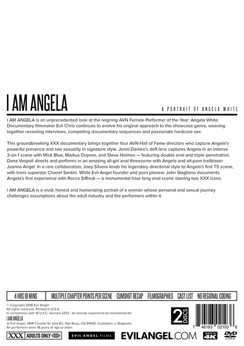 Этот новаторский документальный порно фильм, объединяет четырех режиссеров из зала славы AVN, каждый из которых демонстрирует мощную харизму Анджелы и ее необузданную сексуальность в своём фирменном стиле.